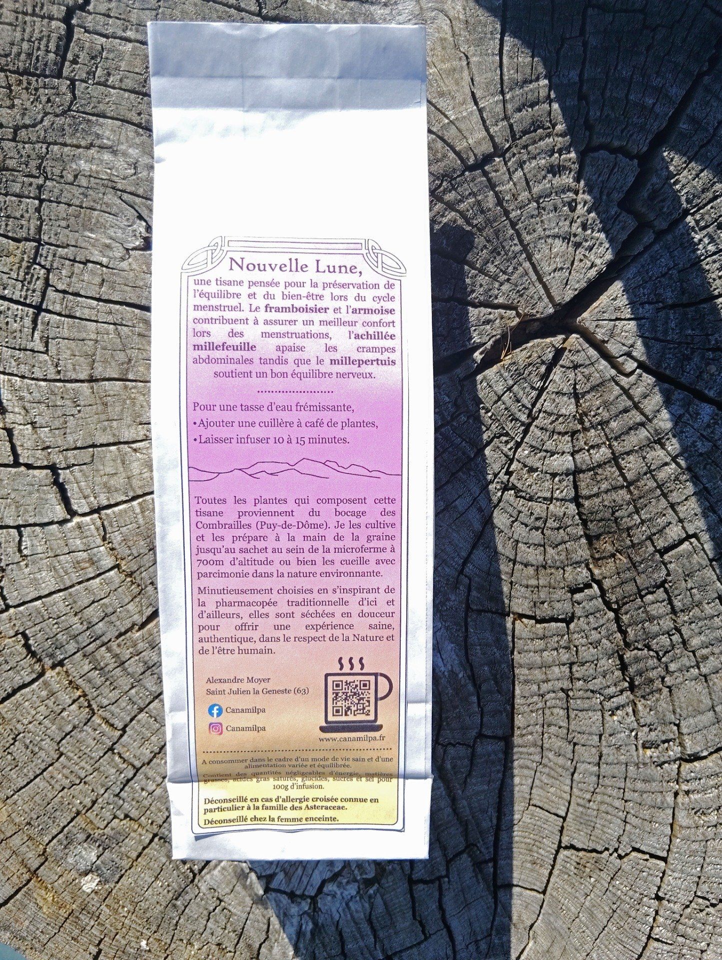 Nouvelle Lune, une tisane pensée pour la préservation de l'équilibre et du bien-être lors du cycle menstruel.